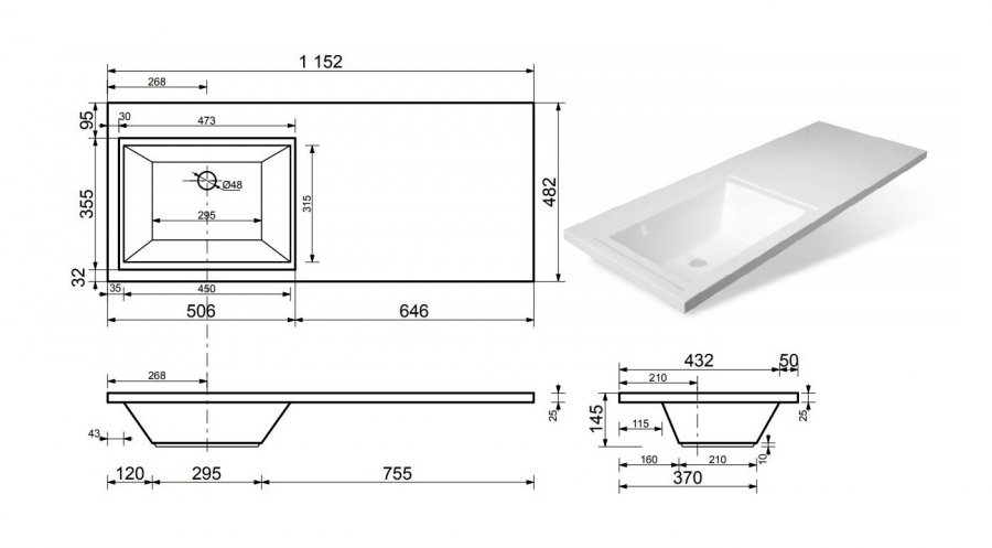 | Материал* | Литьевой мрамор |