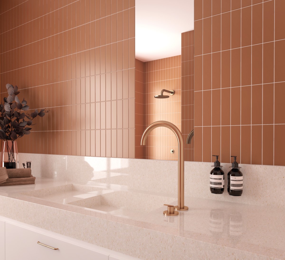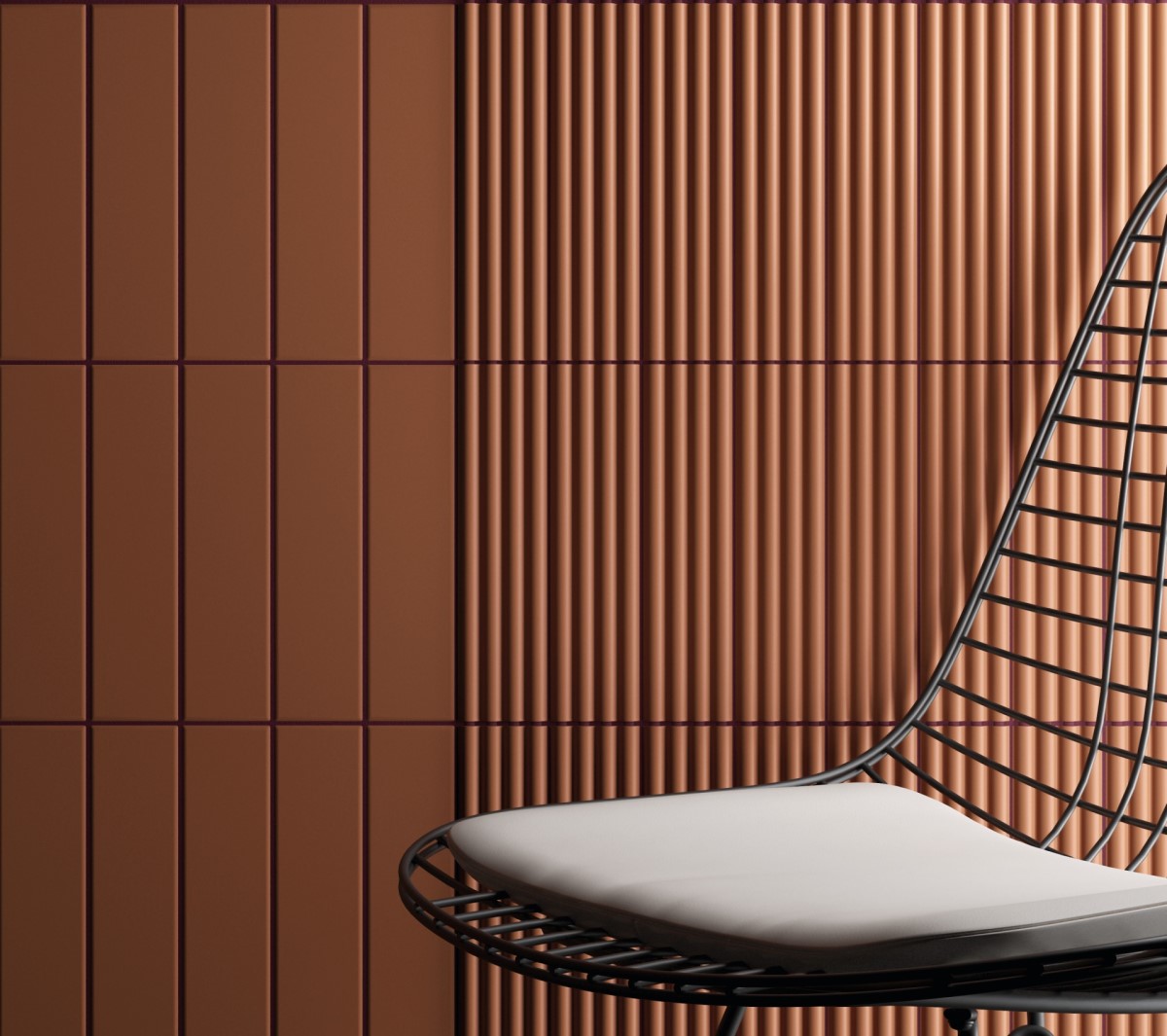 Терракотовый цвет плитки «Terra» создает атмосферу тепла и уюта, идеально подходящую для скандинавского и средиземноморского стилей. Монохромный рисунок подчеркивает простоту и гармонию, позволяя сосредоточить внимание на форме и текстуре материала.