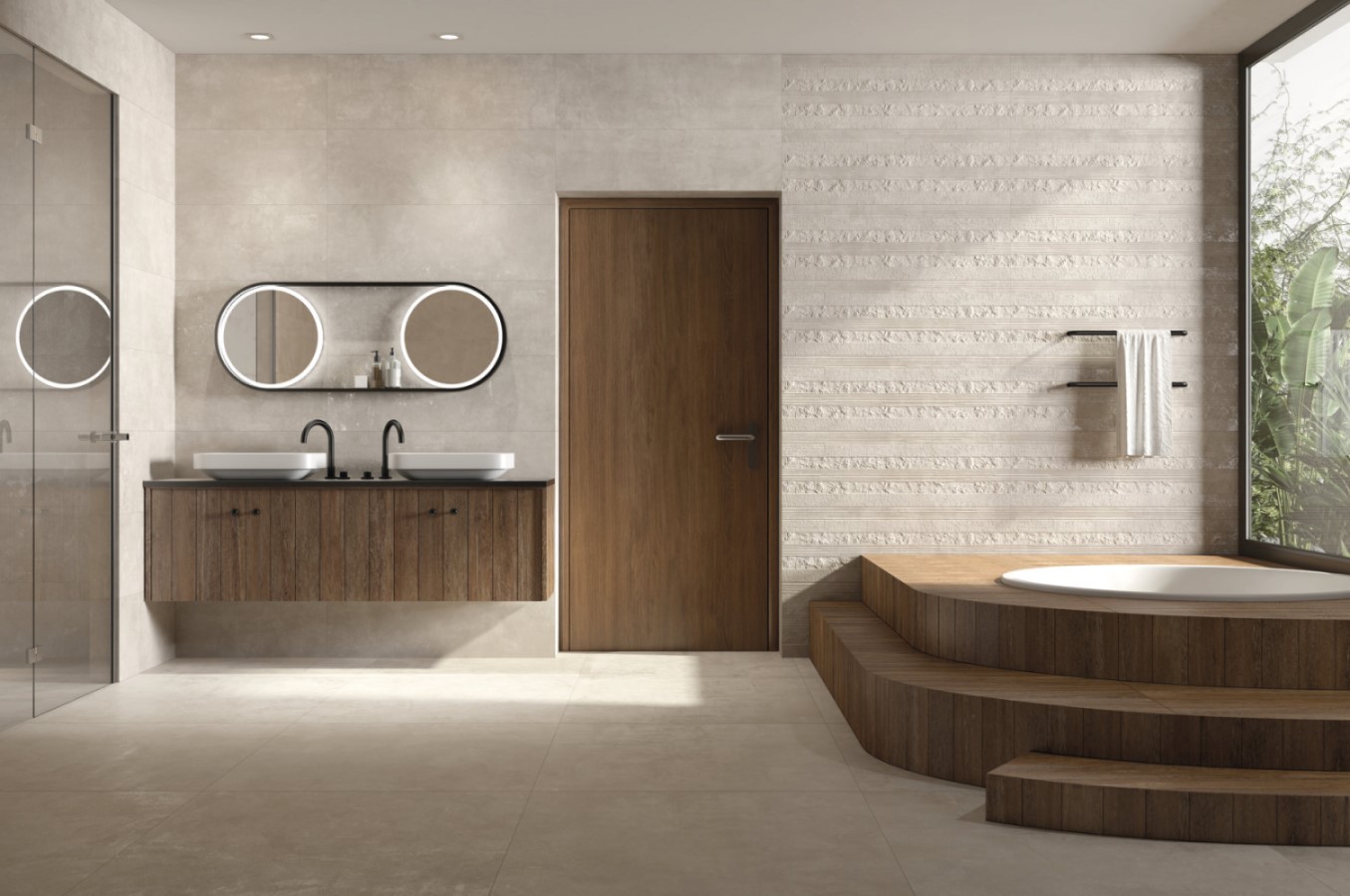 Внешний вид плитки Peronda Downtown 4D Beige SP R 100×100 создает впечатление монохромного рисунка, что придает интерьеру строгость и лаконичность. Этот стиль идеально подходит для современных и минималистичных дизайнов, где акцент делается на чистых линиях и простоте.