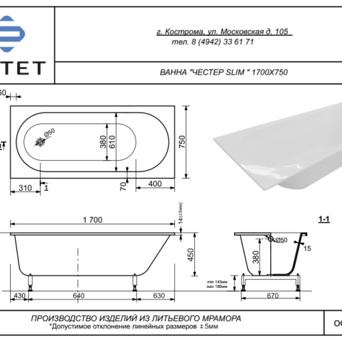| Длина (мм) | 1700 |